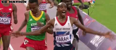 So even though he had his naysayers who thought he should stick to what he knows best, Mo decided to focus more on half marathon and marathon distances. Along comes 2014 and in April he finished the London Marathon in eighth place in a time of 2:08.21, setting a new English national record, and then in August he successfully defended his 5,000m title and won a gold in the 10,000m in Zürich at the 2014 European Athletics Championships. Just another major championship double then. Then to cap it all off, in September he won the Great North Run in a personal best time of 1:00:00, exactly. What. A. Legend. I’ll even forgive him those Quorn ads because I like him and actually, I rather like Quorn too. Plus he has the best winning face ever. Fact.